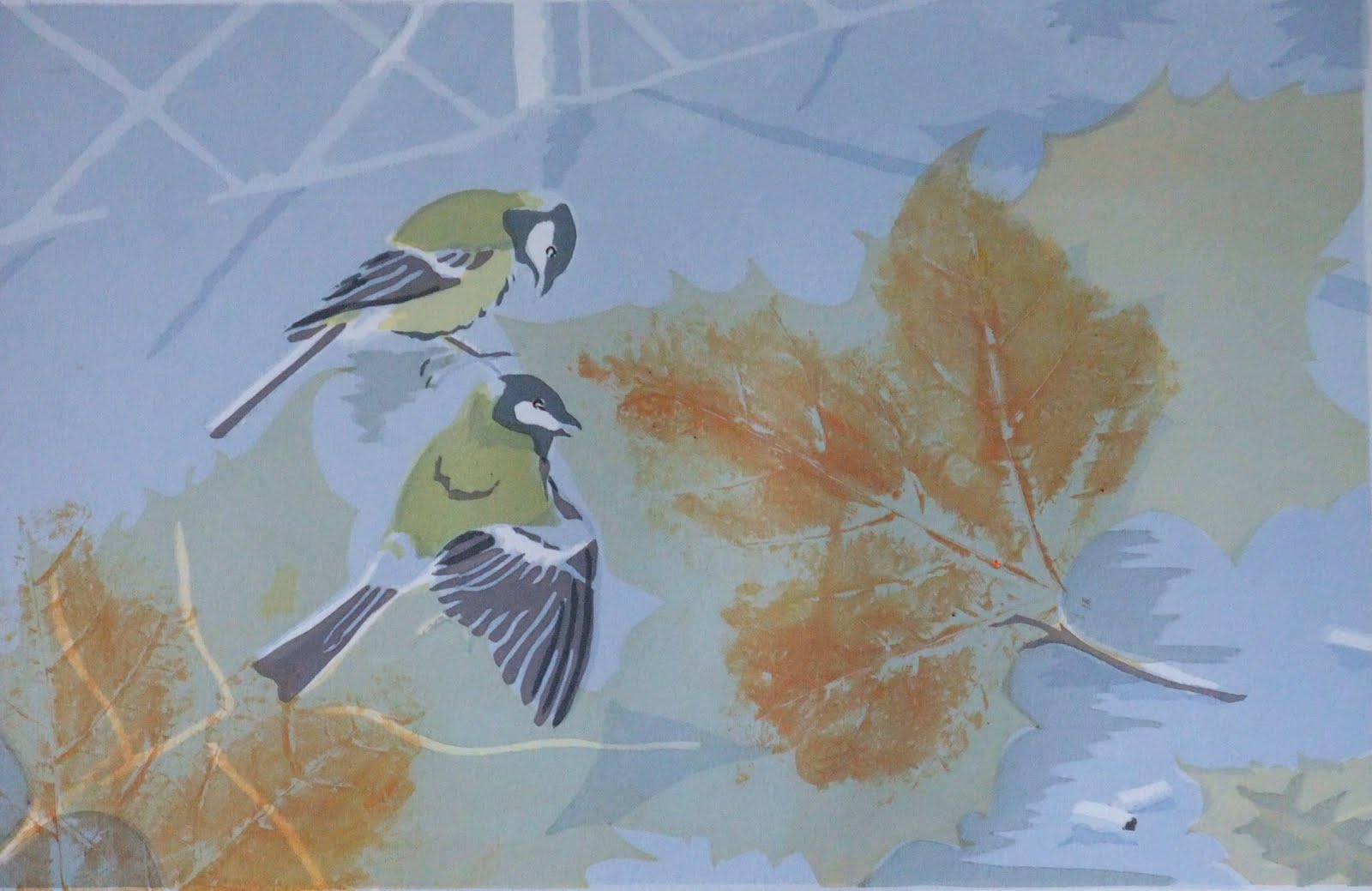 I calmed myself down by looking at Alastair Riley’s lovely painting of urban Great Tits.